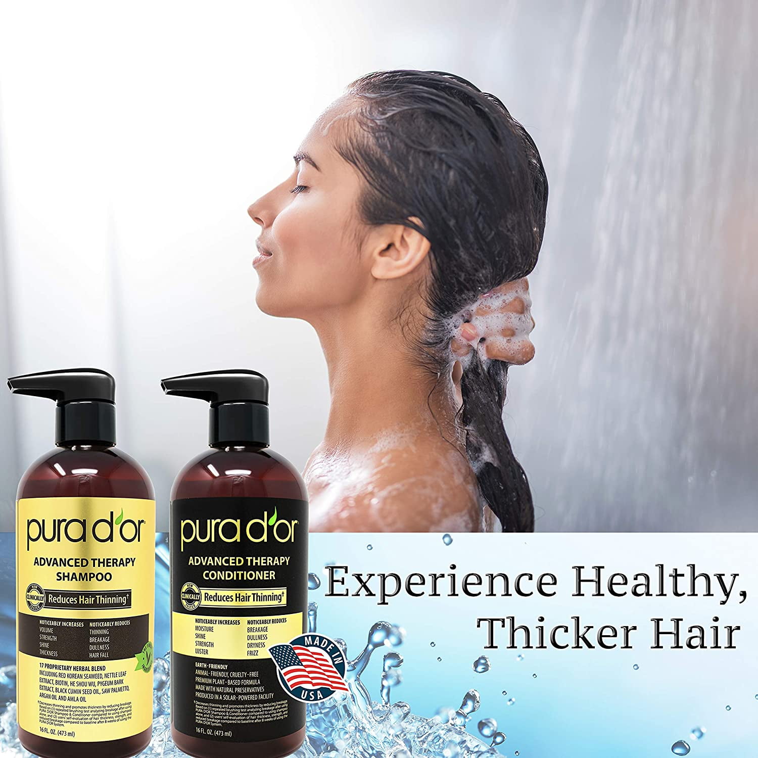Pura D Or Advanced Therapy System Shampoo Conditioner Increases Volume Strength And Shine No Sulfates Made With Argan Oil All Hair Types Men Women 16 Fl Oz Packaging May Vary